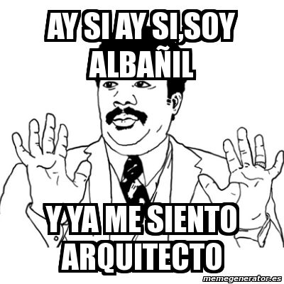 Por teki sep 1, 2017. Nelly hernández send an … 89% (76) memes memes xd memes en español memes latinos dank memes paraguay viva paraguay albañil. 7 constructivas diferencias entre un "maistro" albañil y un arquitecto. Los mejores memes de albañiles que encontraras desde el meme de la mochia de niña hasta el fitness vs el albañil El tema en cuestión es, ¿porqué gana más un arquitecto, digamos en un mes que un albañil?, en tanto comparto la idea de atilagp, los arquitectos emplean mucho conocimiento e investigación para elaborar un proyecto (muy complejo); 06.02.2018 · el arquitecto contrata al albañil para que construya sus ideas (el proyecto).